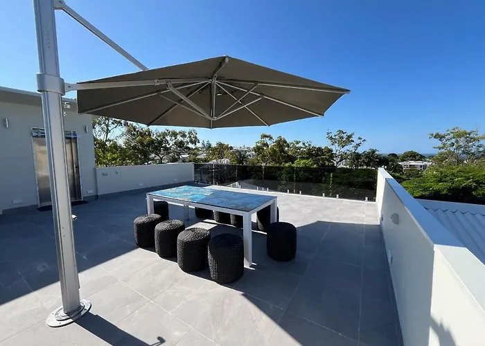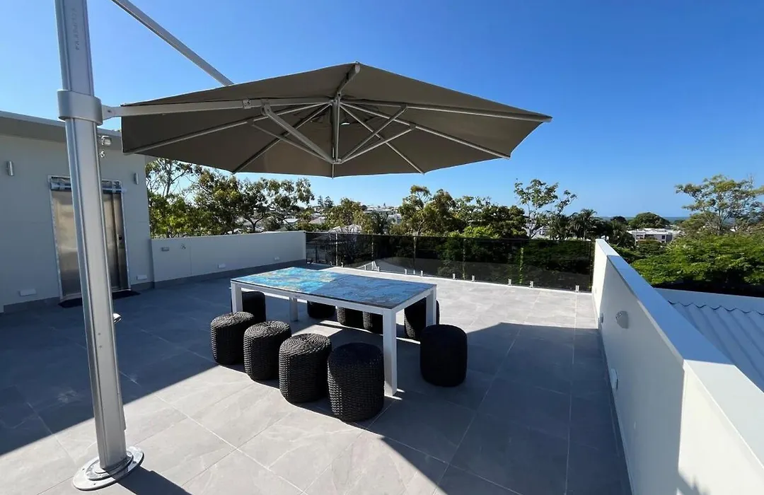 Die 4-Zimmer- Villa 5 Star Luxury Manly Brisbane verfügt über ein privater Parkplatz und eine Terrasse mit Aussicht aufs Meer.